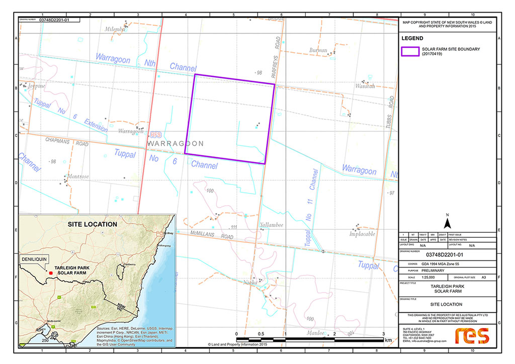 The project is located approximately 23km south east of Deniliquin, New South Wales. The project is located within the Edward River Council area.
